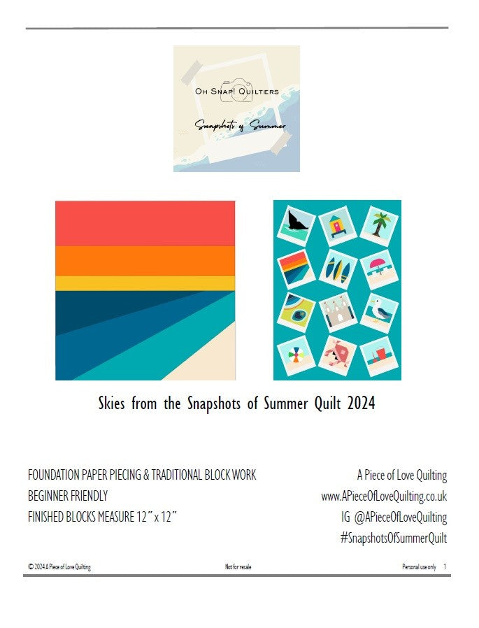 Skies Block from the Oh Snap! Quilters 2024 Snapshots of Summer quilt-a-long.
