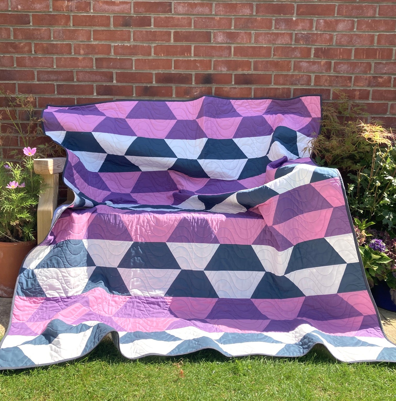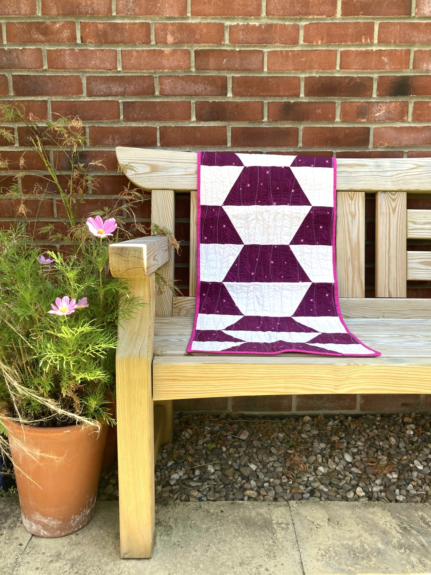 It is No.1 and 2 of the Blocking It Series - a series of quilts that use a repeating block cut entirely from one fat quarter with NO WASTAGE. No. 1 uses whole hexagons and No. 2 uses half hexagons.